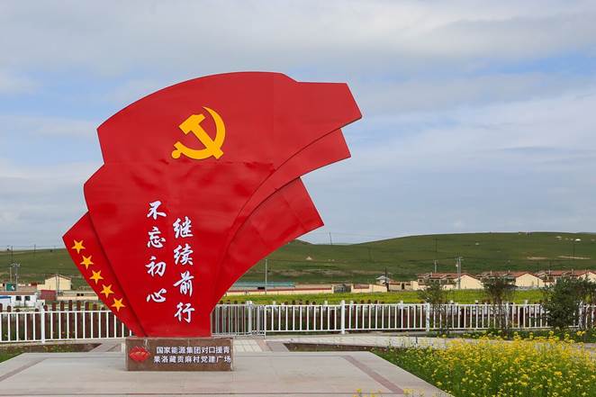 走进青海省海北藏族自治州刚察县沙柳河镇果洛藏贡麻村,蓝天白云下,由国家能源集团援建的党建广场和绿化林映入眼帘,和一旁“听党话、跟党走、乡村兴、人民富”几个鲜红大字共同构成了村里的一道独特风景线。