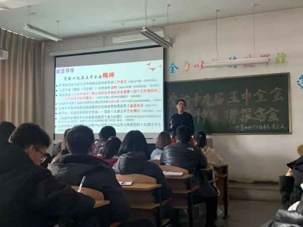 樊学艺老师就精准定位新时代及其新坐标;精准理解全会的精神实质;精准办好自己的事进行了详细的讲解,使大家了解到全会的历史地位和进程——在中华民族复兴的征程上,五中全会恰是一个承前启后、继往开来的时间节点。“前承”“继往”即将挥就的百年史诗,“后启”“开来”第二个百年的恢弘篇章。