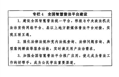 拓展普法网络平台。以互联网思维和全媒体视角深耕智慧普法。强化全国智慧普法平台功能,推动与中国庭审公开网、中国裁判文书网等网络平台的信息共享。建立全国新媒体普法集群和矩阵,发挥“学习强国”等平台优势,形成多级互动传播。建设全国统一的法律、法规、规章、行政规范性文件、司法解释和党内法规信息平台,及时更新数据,免费向公众开放。
