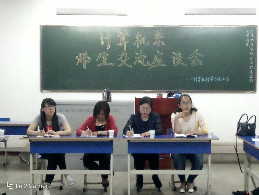 2017年5月12日星期五晚19:30,老师和学生们在教学楼3区3A—507教室开座谈会。参加本次座谈会的有:我系党总支书记高文莲老师;党总支副书记白凤凤老师;分团委书记薛艳芳老师;宋智渊老师,裴斐斐老师,还有各班班长以及各班学生代表。
