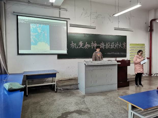 在主持人宣布比赛规则以及相关事项之后,参赛团队成员们以自信饱满的精神状态分别从主体内容、技术运用等方面向大家展示了各自的作品。图文并茂,形象生动。他们落落大方的表达,精巧的设计,新颖的想法,赢得了现场观众、评委的热烈掌声。期间,评委对部分作品的设计人员提出了宝贵的意见,希望同学们注重素材的积累,提升美术素养,并给予他们一些建议。