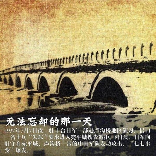七七事变,又称卢沟桥事变,发生于1937年7月7日。1937年7月7日夜,卢沟桥的日本驻军在未通知中国地方当局的情况下,径自在中国驻军阵地附近举行所谓军事演习,并诡称有一名日军士兵失踪,要求进入北平西南的宛平县城(今卢沟桥镇)搜查,被中国驻军严词拒绝,日军随即向宛平城和卢沟桥发动进攻。中国驻军第29军37师219团奋起还击,进行了顽强的抵抗。