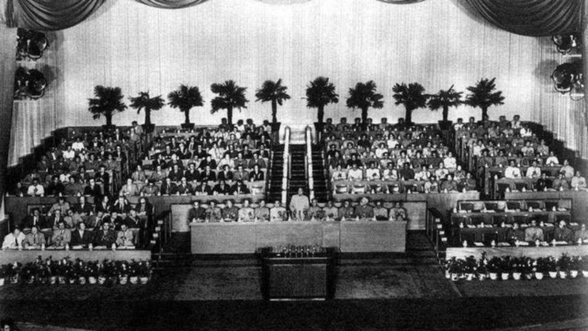 1956年,中国共产党第八次全国代表大会在北京召开。这次大会是在我国社会主义改造基本完成,党面临着新的形势和任务的情况下召开的。出席大会的代表1026人,代表党员1073万人。毛泽东致《开幕词》,刘少奇作《政治报告》,周恩来作《关于发展国民经济的第二个五年计划的建议的报告》,邓小平作《关于修改党的章程的报告》,朱德、陈云、董必武等发言。