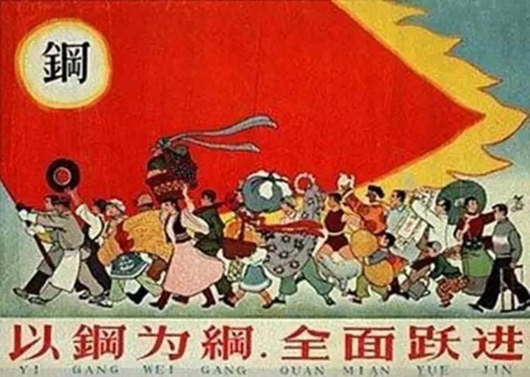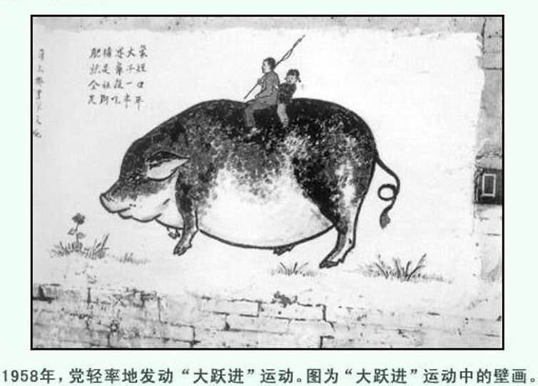 1957年9月,在中共八届三中全会上,毛泽东认为1956年对经济工作中过急情况的纠正是“反冒进”。八届三中全会通过了《农业发展纲要四十条(修正草案)》,这实际是农业“大跃进”的纲领。会后,全国大部分省、自治区召开党的各级干部会议,积极准备掀起工农业生产的高潮。1958年5月党的八大二次会议正式通过了社会主义建设总路线,号召全党和全国人民,争取在15年或者更短时间内,在主要工业产品的产量方面赶上和超过英国。会上通过了第二个五年计划,提出了一系列不切实际的任务和指标。会后,全国各条战线迅速掀起了“大跃进”的高潮。8月,中共中央政治局在北戴河举行扩大会议,制定的1958年国民经济计划的第二本帐的主要指标过高。会议还决定在农村普遍建立人民公社。这造成了经济工作中的急于求成和急躁冒进。在大跃进中,高指标、瞎指挥、虚报风、浮夸风、“共产风”盛行,各地纷纷提出工业大跃进和农业大跃进的不切实际的目标,片面追求工农业生产和建设的高速度,大幅度地提高和修改计划指标。在农业上,提出“以粮为纲”,不断宣传“高产卫星”、“人有多大胆,地有多大产”,粮食亩产量层层拔高。在工业上,为实现全年钢产量1070万吨的指标,全国几千万人掀起了“全民大炼钢铁运动”,并且“以钢为纲”,带动了其它行业的“大跃进”。交通、邮电、教育、文化、卫生等事业也都开展“全民大办”,把“大跃进”运动推向了高潮。