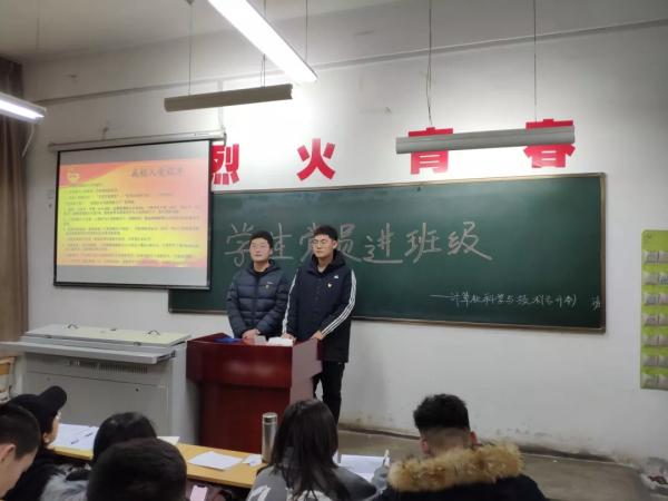 为保持共产党员先进性教育活动的精神传达贯彻到团员青年中去;教育引导广大团员青年“永远跟党走”;帮助同学们更好的了解中国共产党,我系组织召开了学生党员进班级的活动。