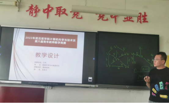 为促进青年教师更新教育理念、掌握现代教学方法,落实学校“以赛促教、以赛促改”的工作要求,我系于6月20日举行了“2022年青年教师教学基本功竞赛”活动。我系40周岁(1982年8月31日后出生)以下的20位青年教师参加了比赛。系部领导和全体教师进行了观摩、评分。并特别邀请学术院长李德玉教授、教学名师秦品乐教授当评委指导点评。