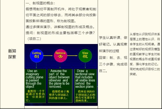 通过本堂课的教学,基本实现了预定的教学计划,同学们也学会了剖视图的整个流程。但教学过程和教学策略方面存在一些问题,通过反思总结,相信在下一轮的教学过程中达到更好的效果。