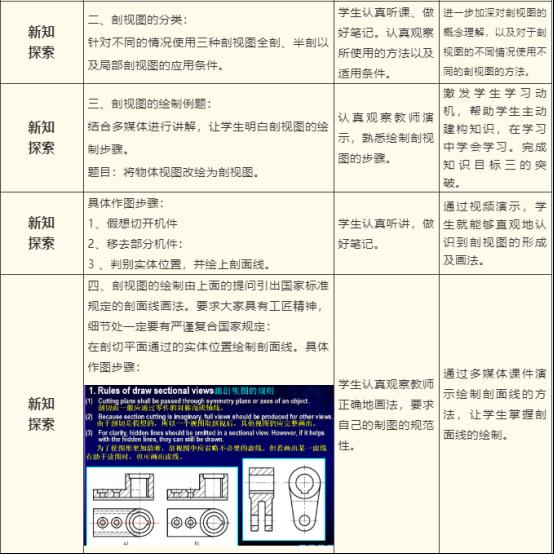 3、教学策略方面:通过工匠精神要求我们要有严谨等态度对待我们的工程制图,又根据内部结构复杂不易标注以及读图引出本节课内容,抛出问题进而分析问题,但个别同学互动性不高,跟不上老师思路。在课前应选择学生感兴趣的案例来增强学生积极性。