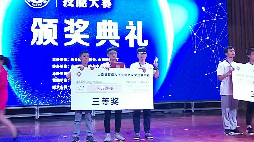2017年6月11日,山西省首届大学生信息安全技能大赛在山西工商学院完满落幕。大赛由山西省团委和山西省教育厅联合主办,山西互联网应急中心和山西工商学院协办,中国信息安全测评中心山西测评中心承办,吸引了全省1800多名大学生,11所高校参加选拔赛,最终全省共有27支队伍进入总决赛。