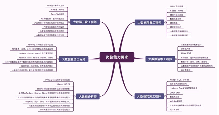 紧跟市场需求进行人才培养,主要培养适应经济与社会发展需要的大数据科学与工程领域的应用型高级工程技术人才。拟定培养方案均来源于实际项目及企业要求,通过对主流招聘网站、主流互联网公司、大数据相关产业联盟对人才的需求和岗位能力要求分析,构建模块化课程,灵活应对20+岗位培养方向。目前以六大市场热门岗位的培养方案为主:大数据采集工程师、大数据实施工程师、大数据运维工程师、大数据开发工程师、大数据算法工程师、大数据分析师。