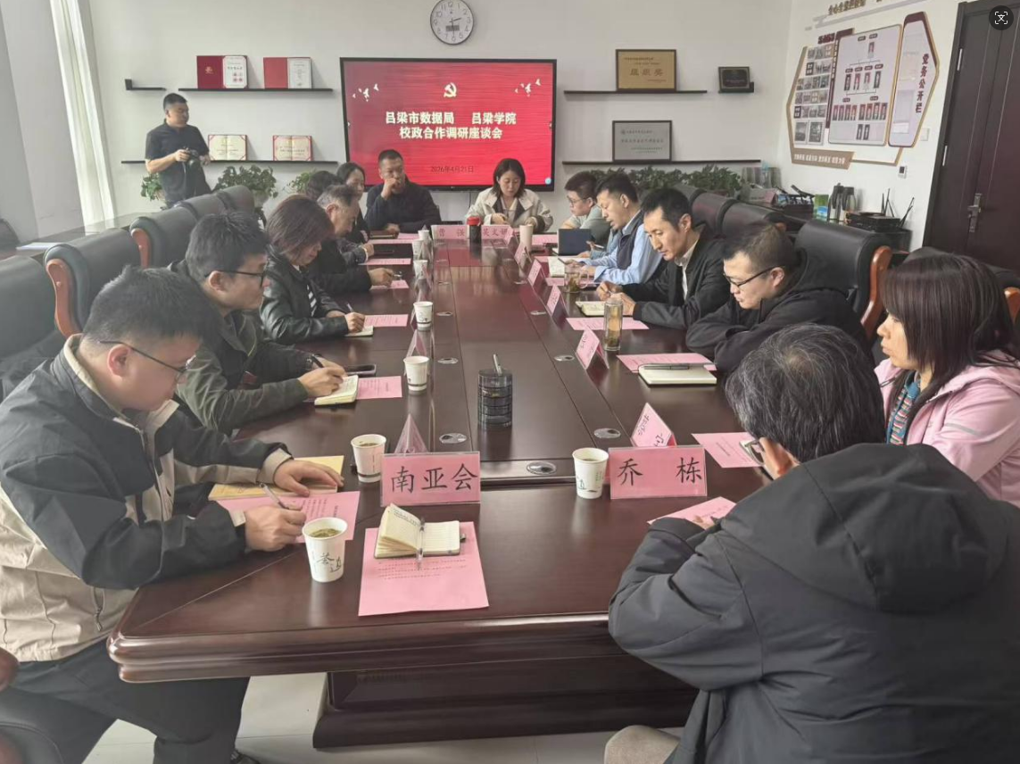 为深入贯彻落实数字吕梁建设相关部署,深化校政合作、促进资源互补,精准对接地方数字经济发展需求,推动必威西汉姆联必威betway与地方政务数据工作深度融合。2026年4月21日,必威西汉姆联领导班子携教研室主任、博士及骨干教师一行赴吕梁市数据局开展调研座谈。市数据局党组成员、副局长闫兴华、裴向东及各相关科室负责人热情接待调研团一行,双方围绕校政协同育人、科研成果转化、数字吕梁建设等重点工作深入交流、凝聚共识,推动校政合作走深走实。